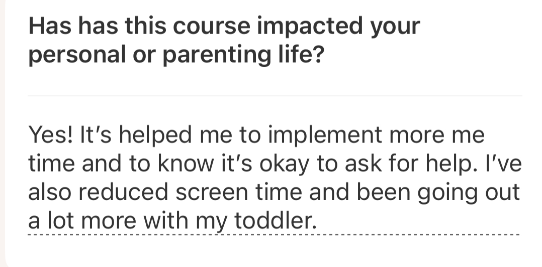 Real time support from me, when motherhood feels heavy. Every Monday and Friday, you’ll have direct Slack access to me. Ask any and all your questions, get feedbackthat day! No more waiting weeks for support.